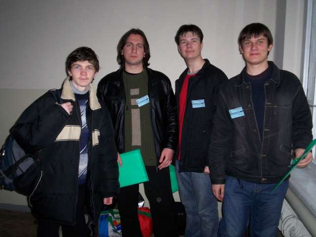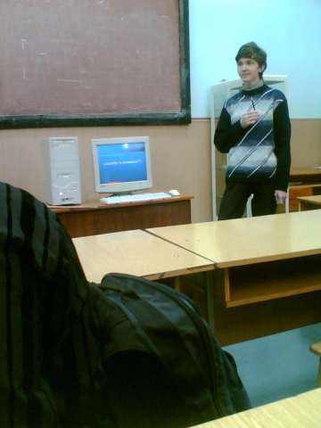 Вот явное свидетельство о том, что был на конференции, даже докладывался. Были очень интересные доклады других молодых учёных о светодиодном табло (на фотке — это не размазня, а матрица светодиодов), о СВЧ-гироскопах и прочих современных устройствах. Радует, что люди приезжают из дальних областей страны, привозят свои научные разработки. В эти моментывспомнилось наше конструкторское бюро — как оно там поживает. Да и вообще, день факультета на носу — нельзя этим носом упасть в грязь.
