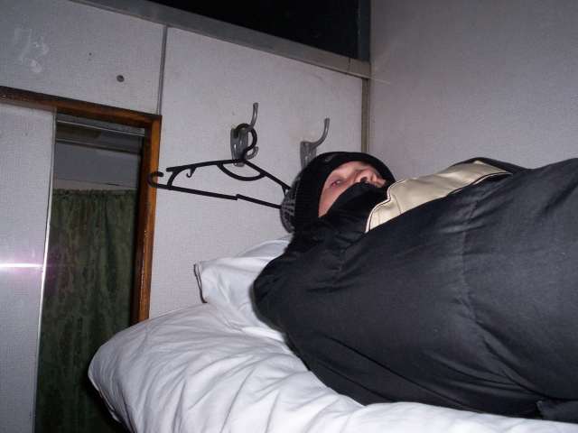 Собственно вот так и ехал — в шапке, куртке и под одеялами.