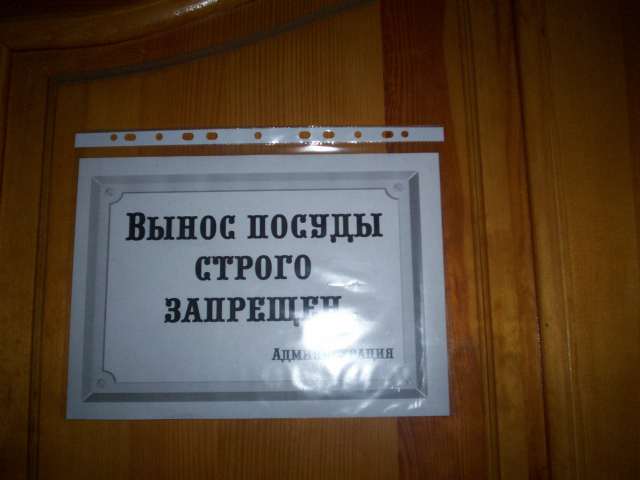 Вот и о буфетчицах — видимо выносят потихоньку посуду, а тут надпись. Может быть не ту посуду выносят…